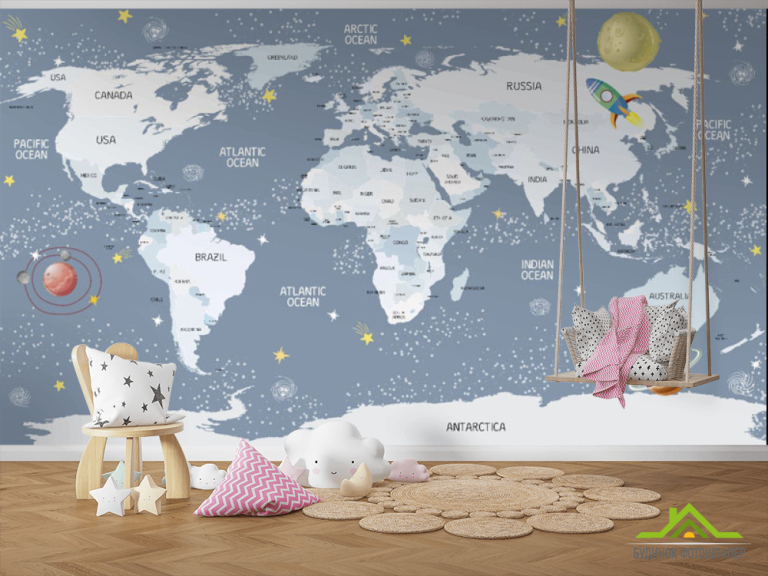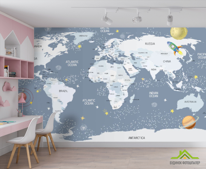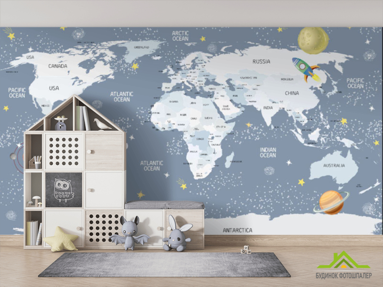 Фотошпалери блакитна карта дитяча англійською мовою Фотошпалери блакитна карта дитяча англійською мовою