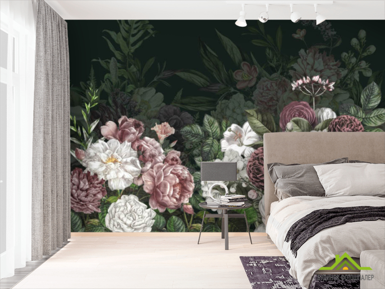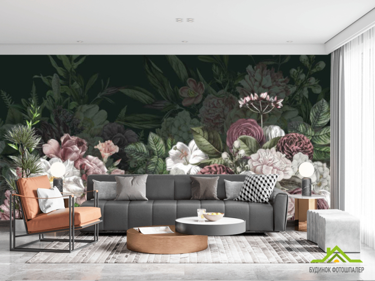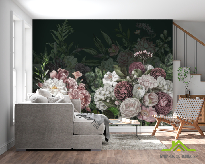 Фотошпалери темні вінтажні квіти Фотошпалери темні вінтажні квіти