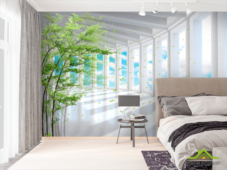 Фотошпалери Бамбук і вид з вікна Фотошпалери Бамбук і вид з вікна
