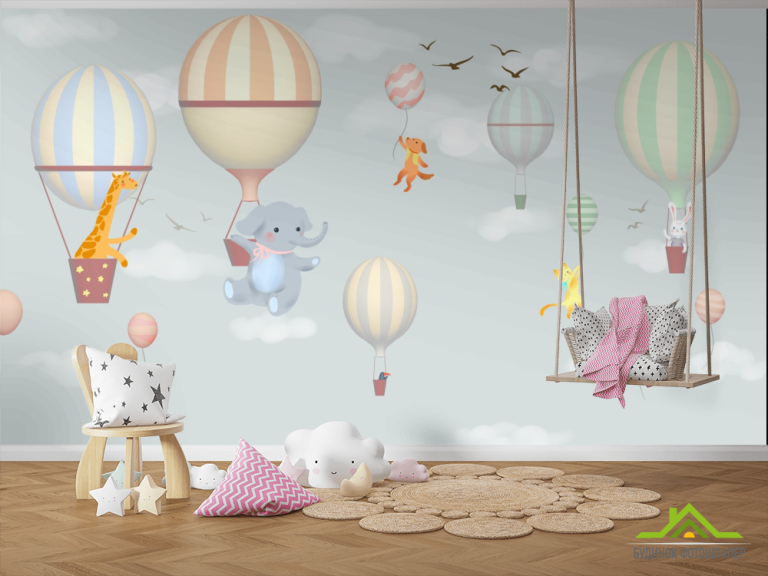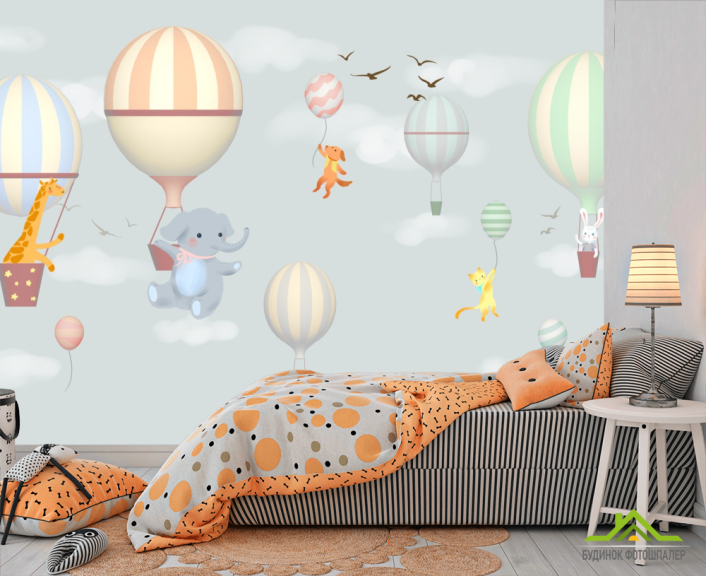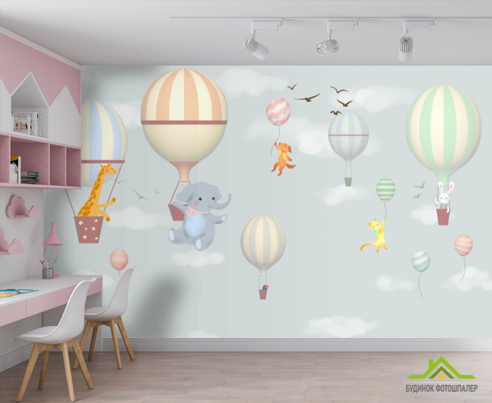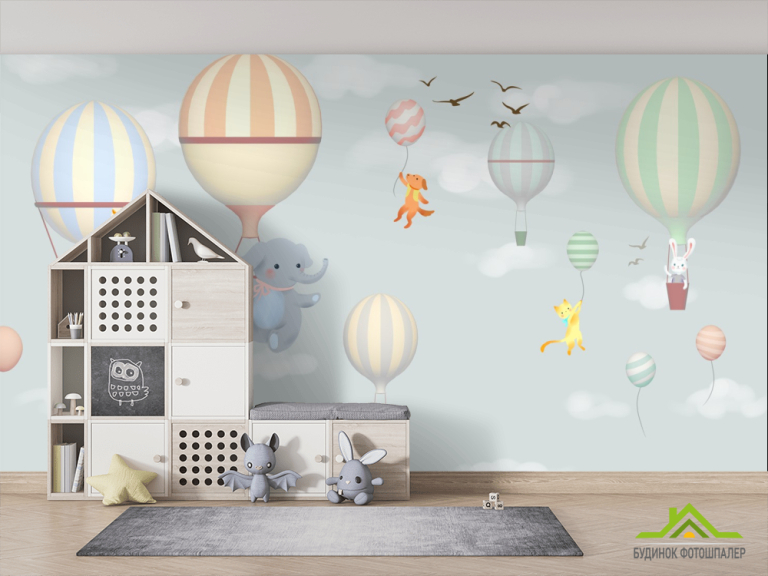 Фотошпалери тваринки на кульках у небі Фотошпалери тваринки на кульках у небі