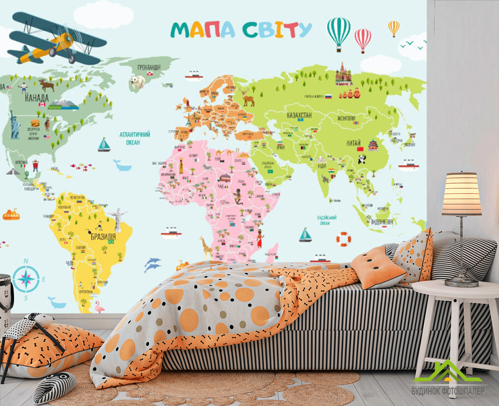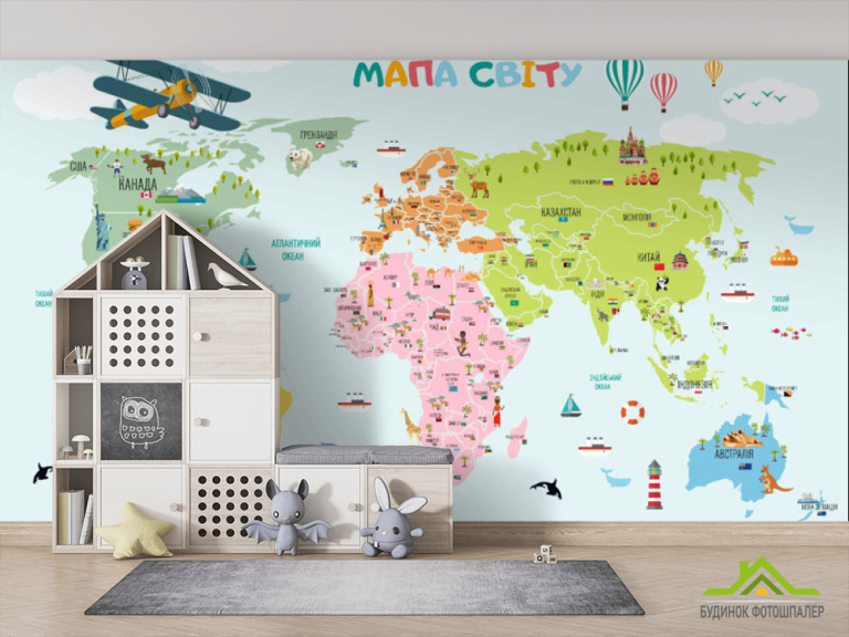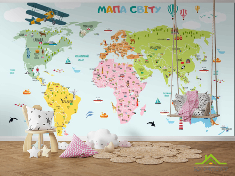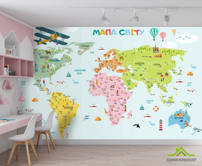 Фотошпалери кольорова дитяча карта українською Фотошпалери кольорова дитяча карта українською
