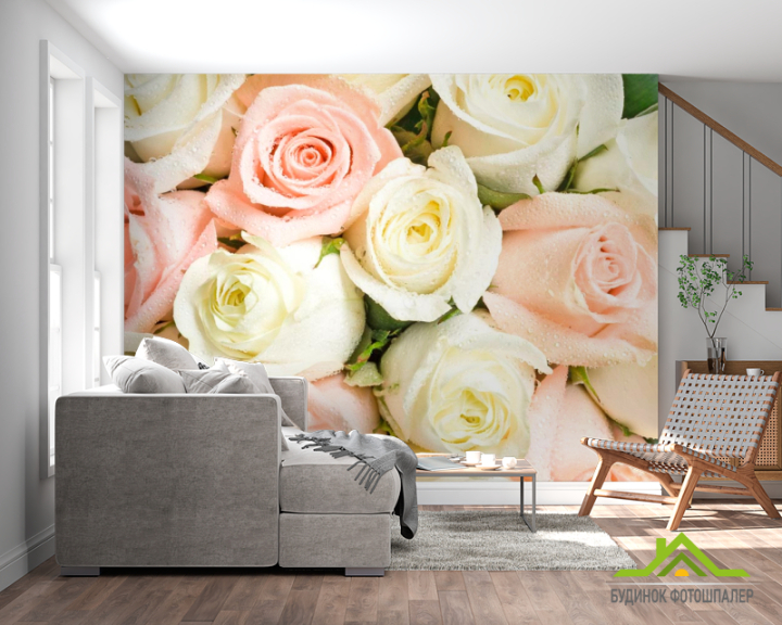 Фотошпалери Білі та кремові троянди Фотошпалери Білі та кремові троянди