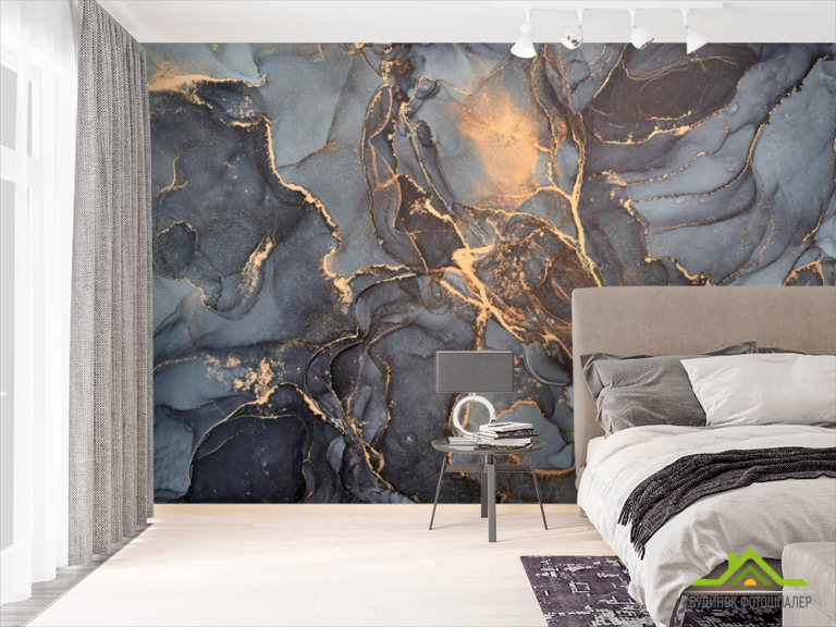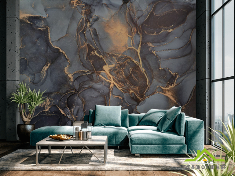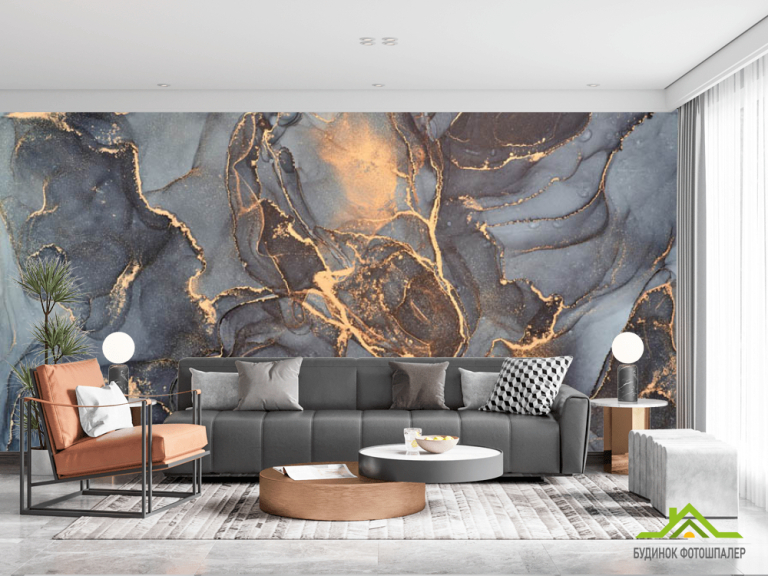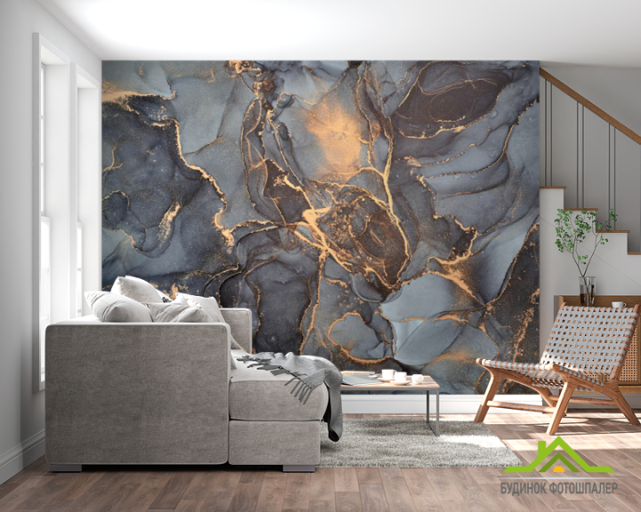 Фотошпалери Сірий флюїд з золотом Фотошпалери Сірий флюїд з золотом