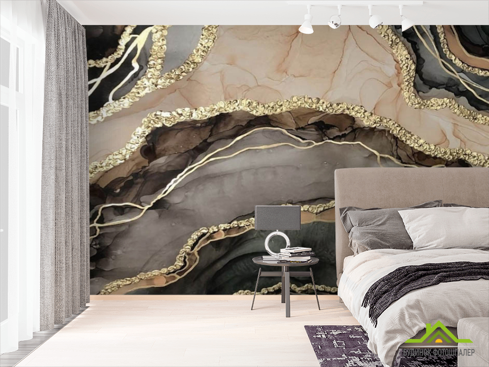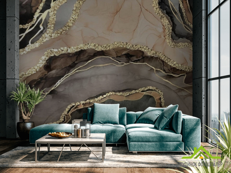 Фотошпалери Коричневий fluid art з золотом