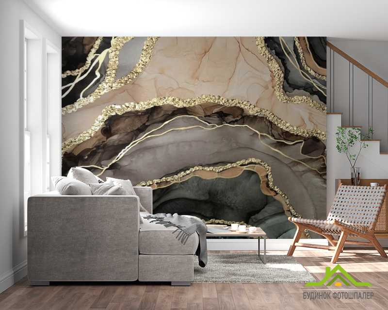 Фотошпалери Коричневий fluid art з золотом Фотошпалери Коричневий fluid art з золотом