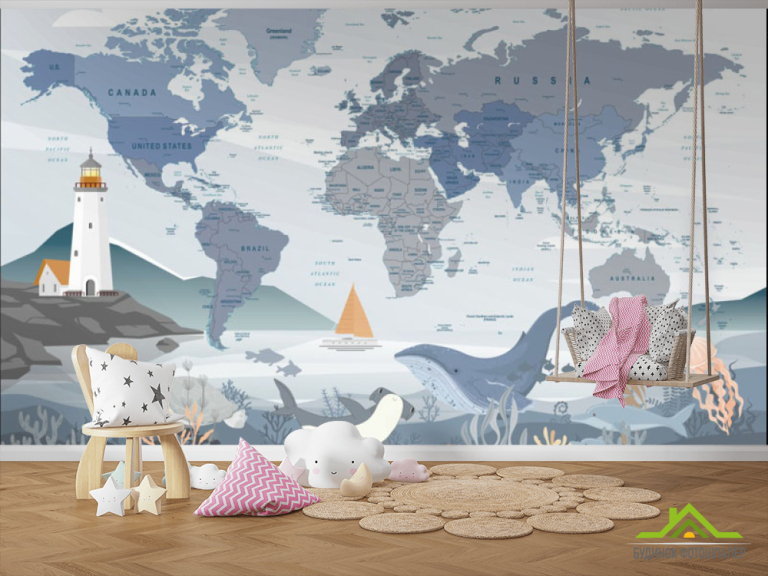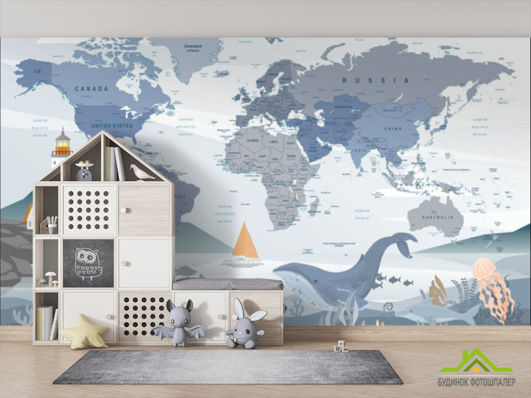 Фотошпалери Карта англійською в морському стилі англійською Фотошпалери Карта англійською в морському стилі англійською
