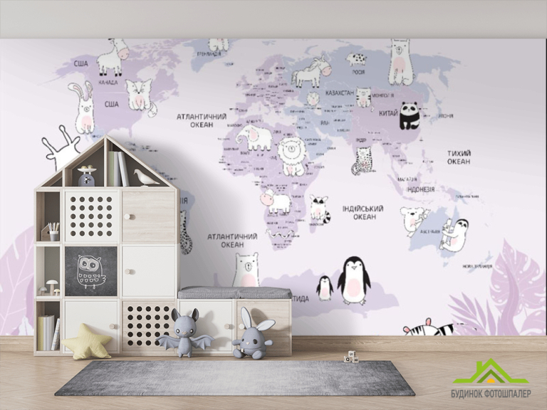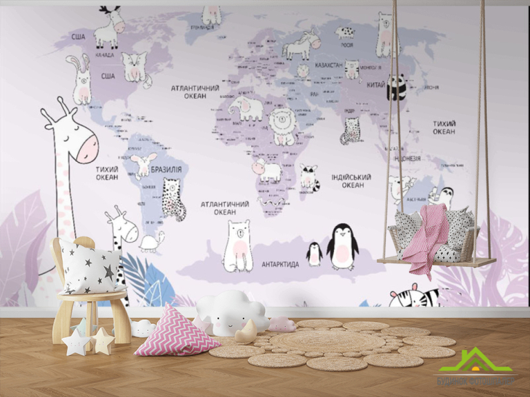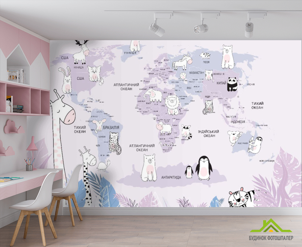 Фотошпалери Дитяча карта рожева Фотошпалери Дитяча карта рожева