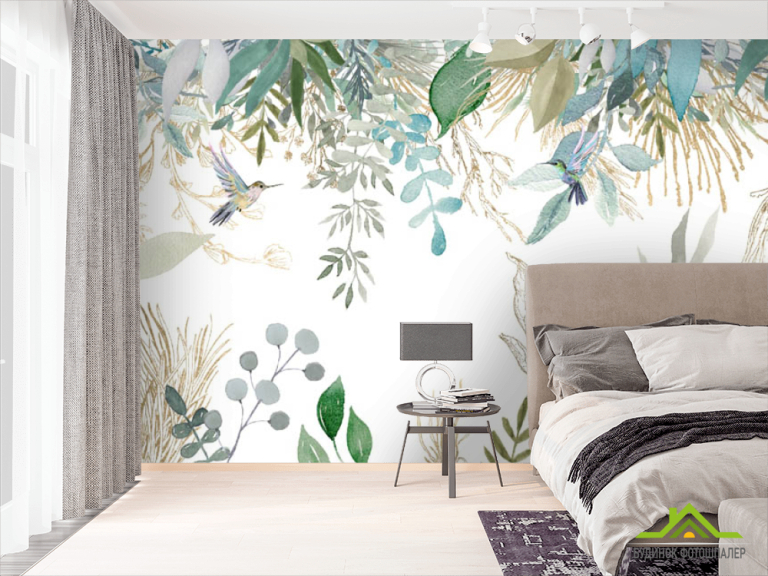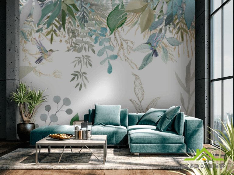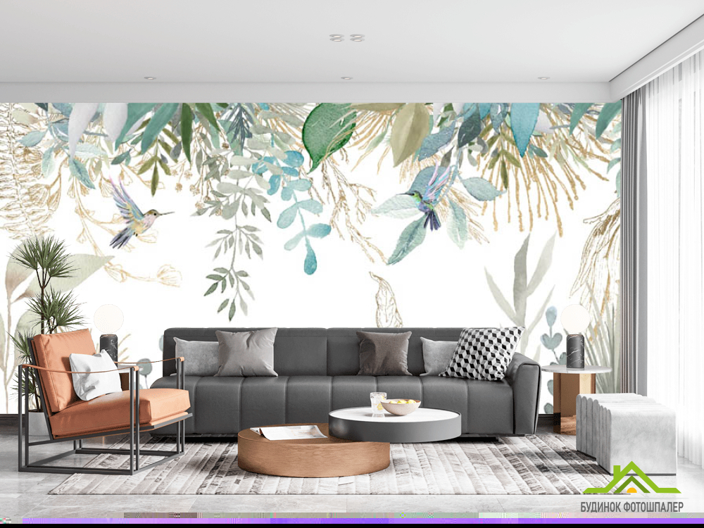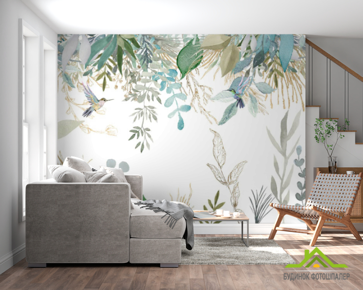 Фотошпалери листя птропіческіе і колібрі