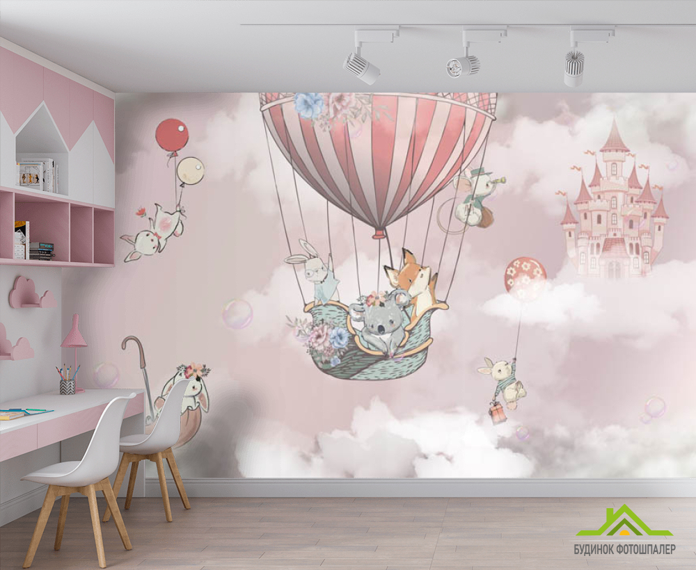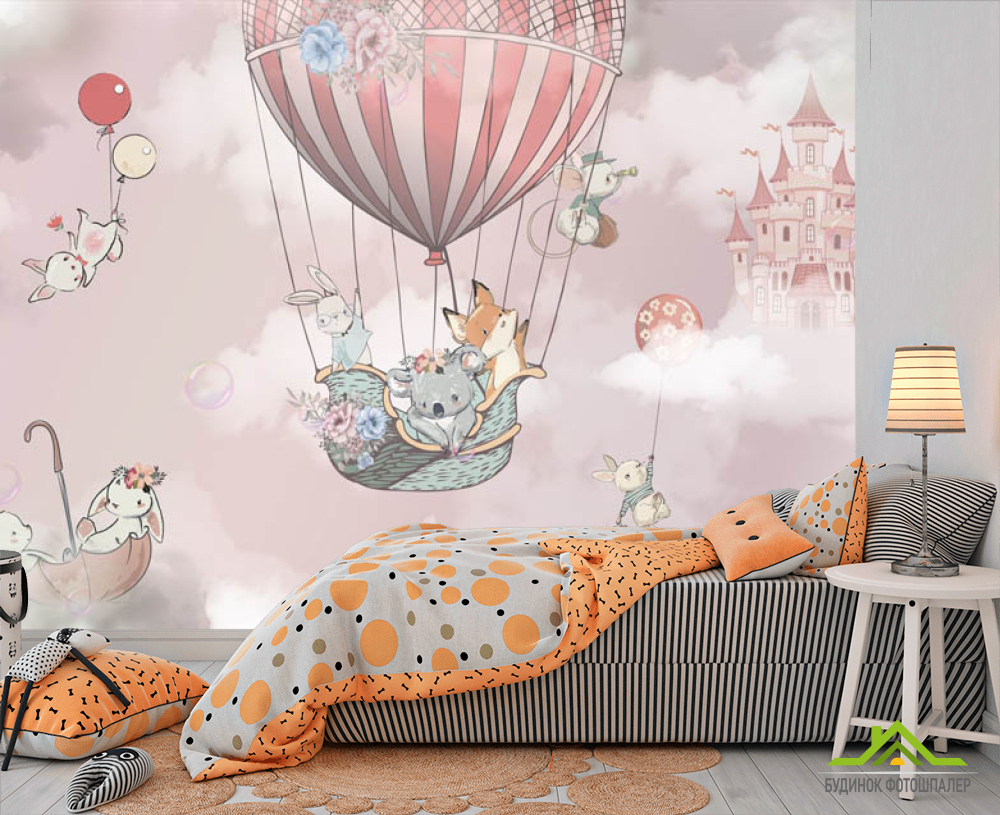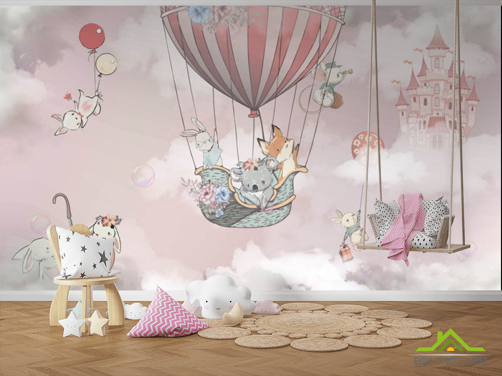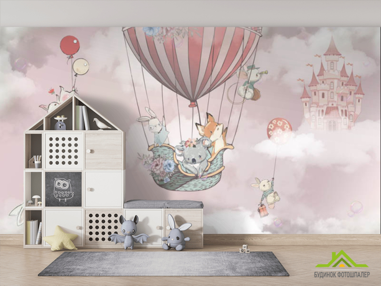 Фотошпалери Повітряна куля з животними для дівчинки Фотошпалери Повітряна куля з животними для дівчинки