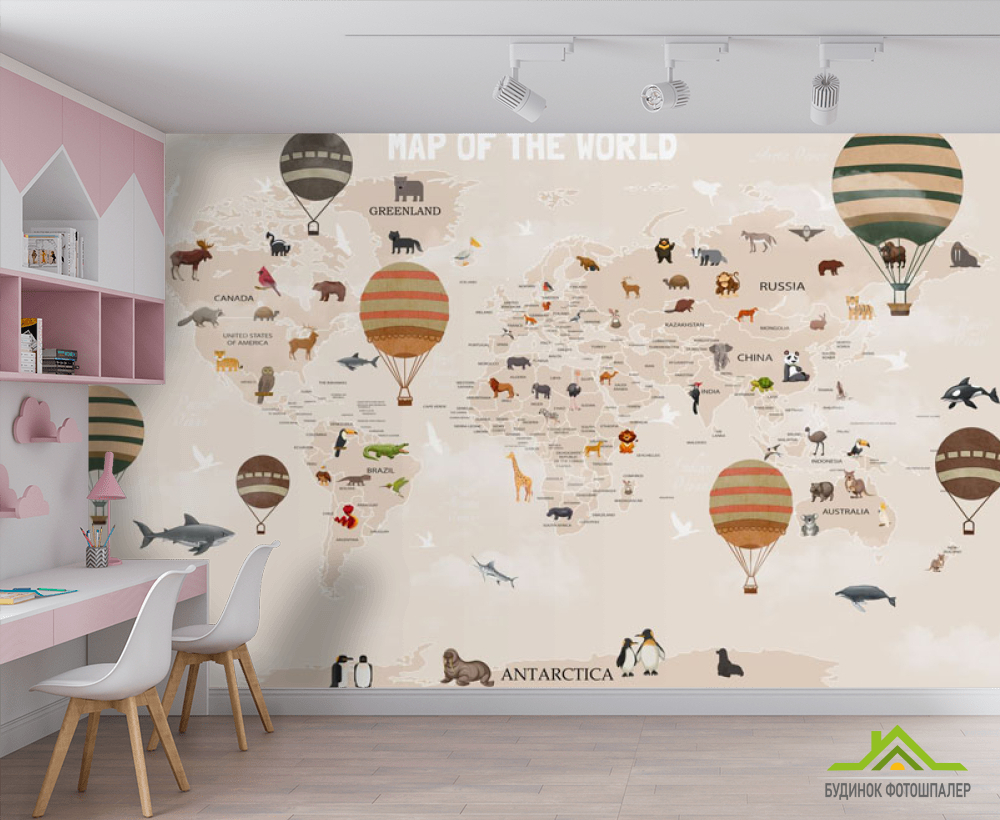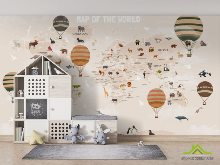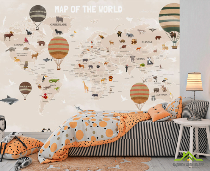 Фотошпалери Карта світу дитяча в бежевому кольорі англійською Фотошпалери Карта світу дитяча в бежевому кольорі англійською