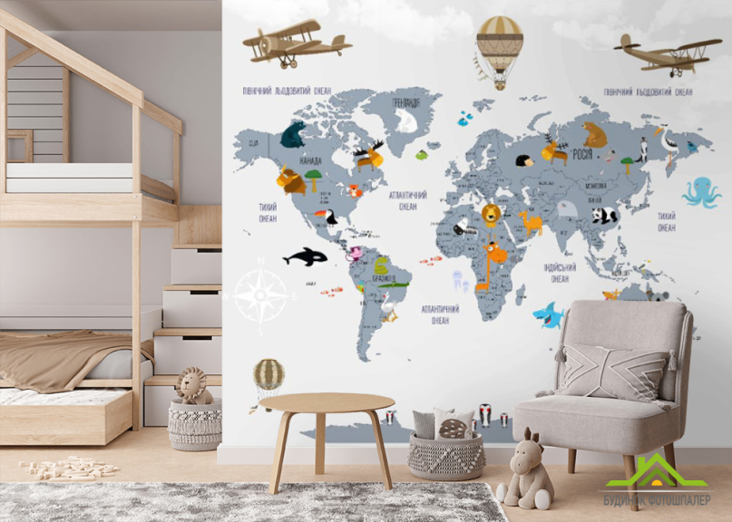Фотошпалери Карта світу дитяча українською Фотошпалери Карта світу дитяча українською