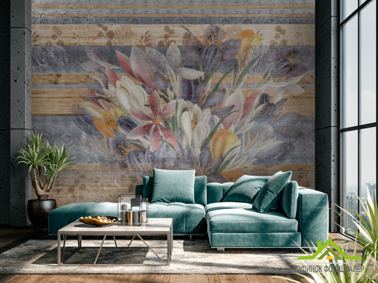 Фотошпалери Крокус на геометричному тлі Фотошпалери Крокус на геометричному тлі
