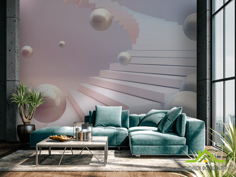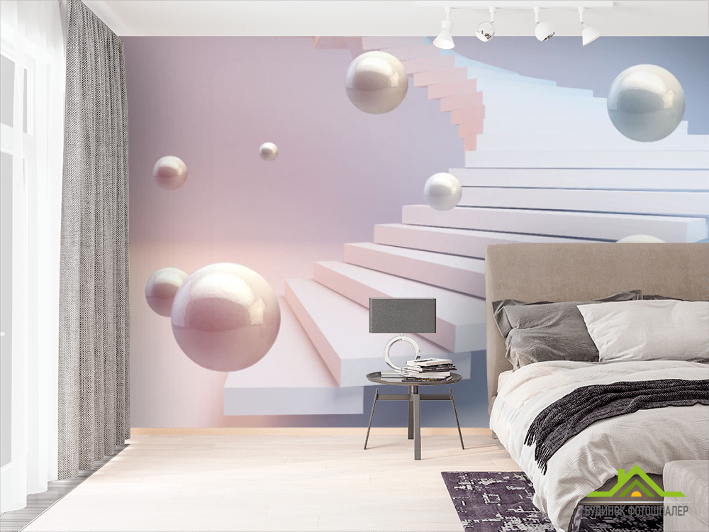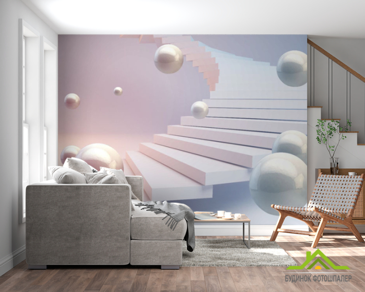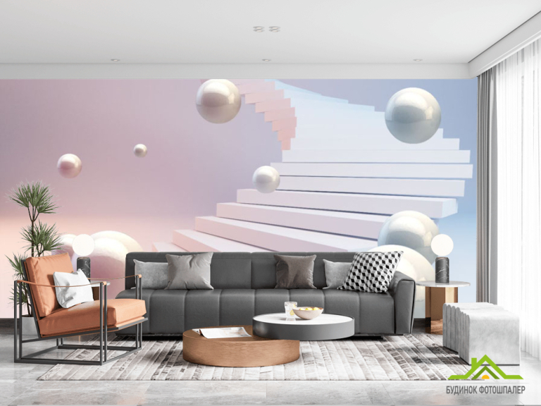 Фотошпалери 3Д кулі і рожеве небо Фотошпалери 3Д кулі і рожеве небо