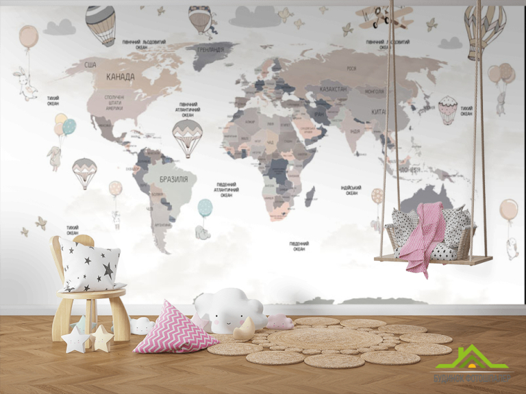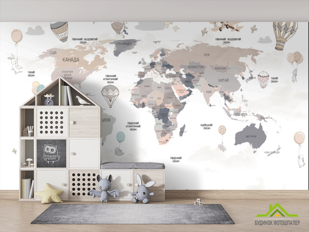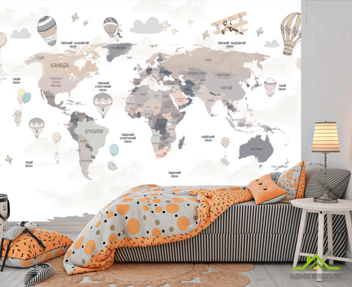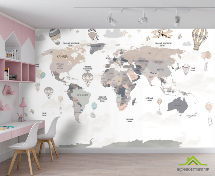 Фотошпалери мінімалістична карта в дитячу Фотошпалери мінімалістична карта в дитячу