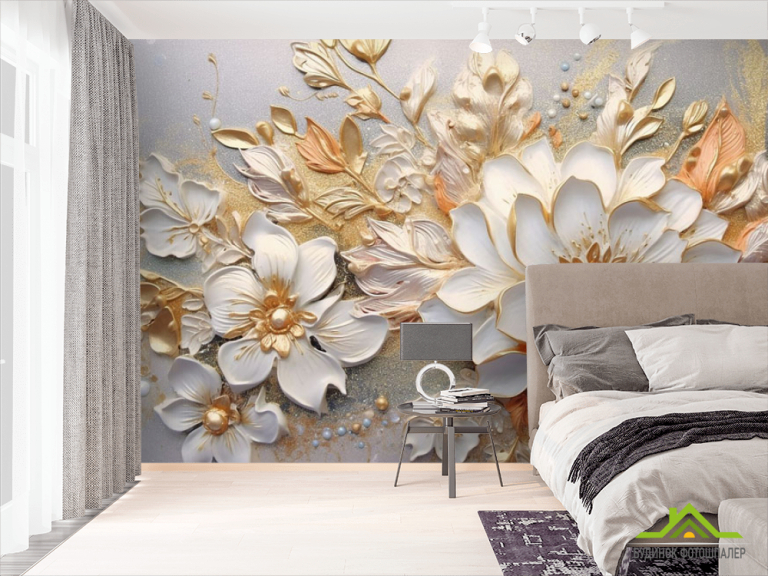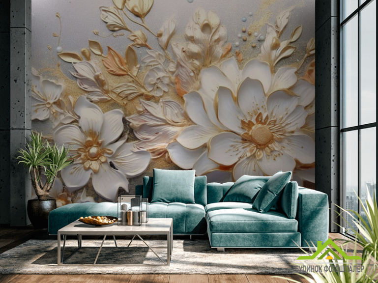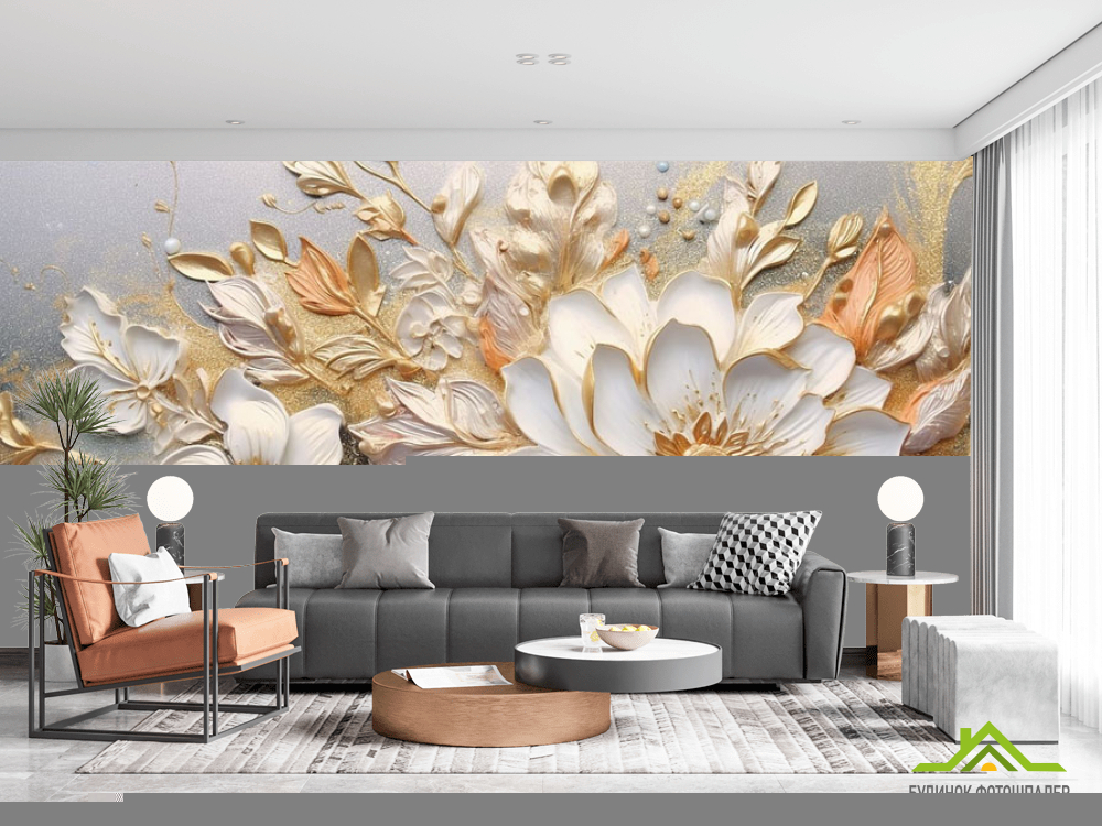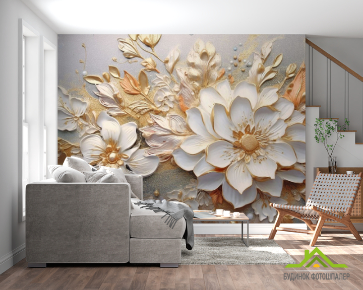 Фотошпалери 3Д квіти золоті Фотошпалери 3Д квіти золоті