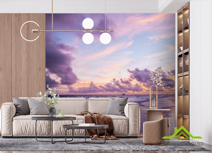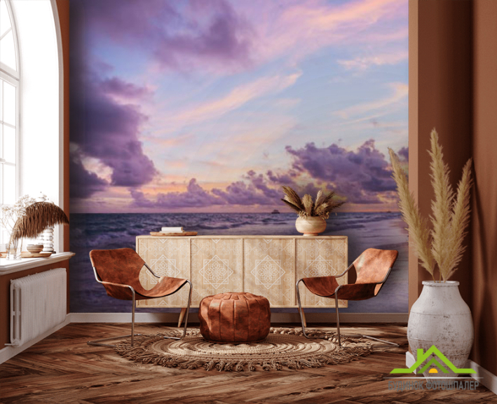 Фотошпалери Фіолетовий захід сонця біля моря Фотошпалери Фіолетовий захід сонця біля моря