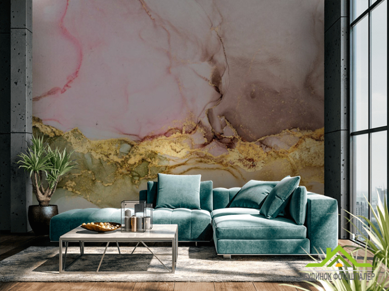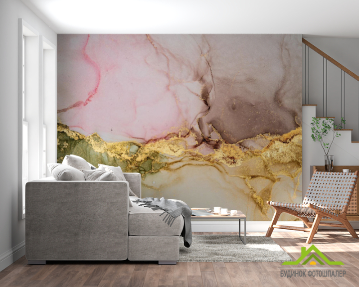 Фотошпалери кольоровий флюїд з золотом