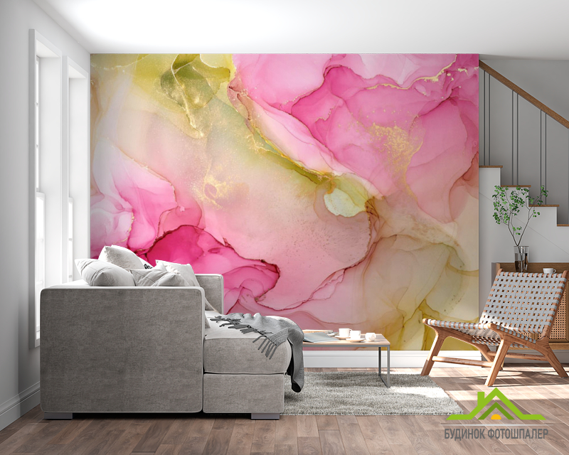 Фотошпалери розлучення рожеві в стилі флюїд арт.