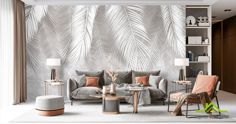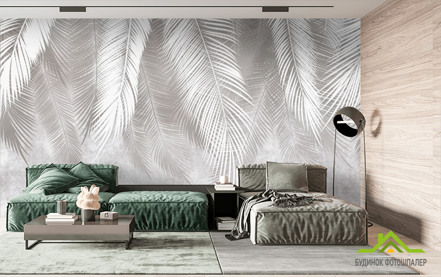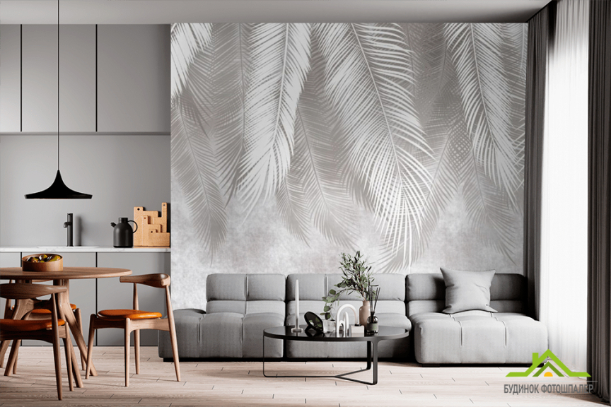 Фотошпалери Сіре листя на фоні бетону