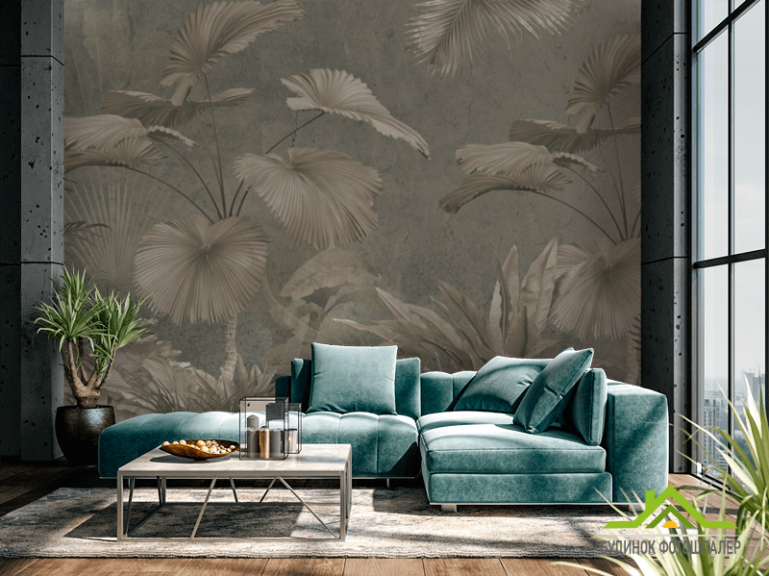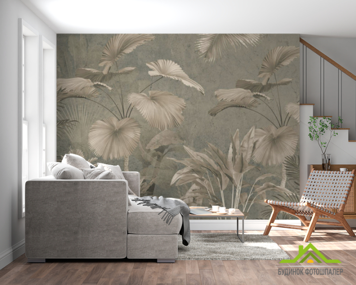 Фотошпалери Тропічні листя в коричневому кольорі Фотошпалери Тропічні листя в коричневому кольорі