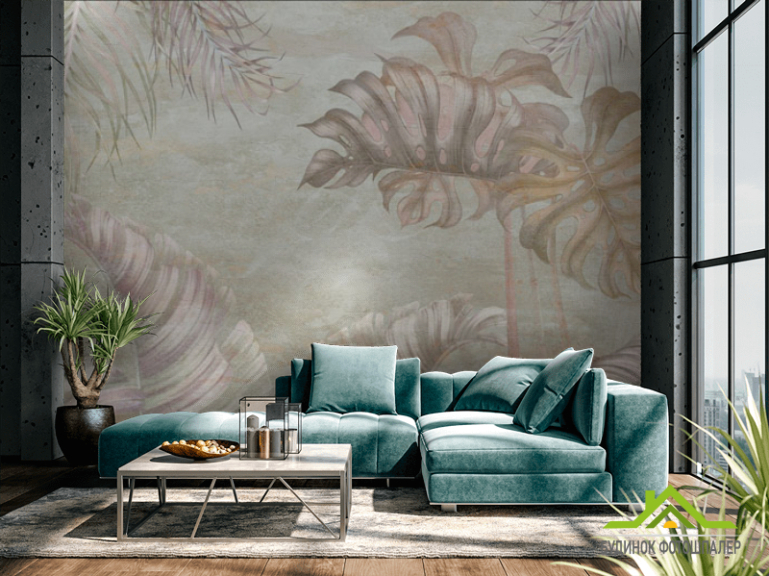 Фотошпалери рожеві тропічні листя Фотошпалери рожеві тропічні листя