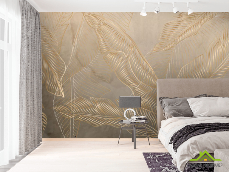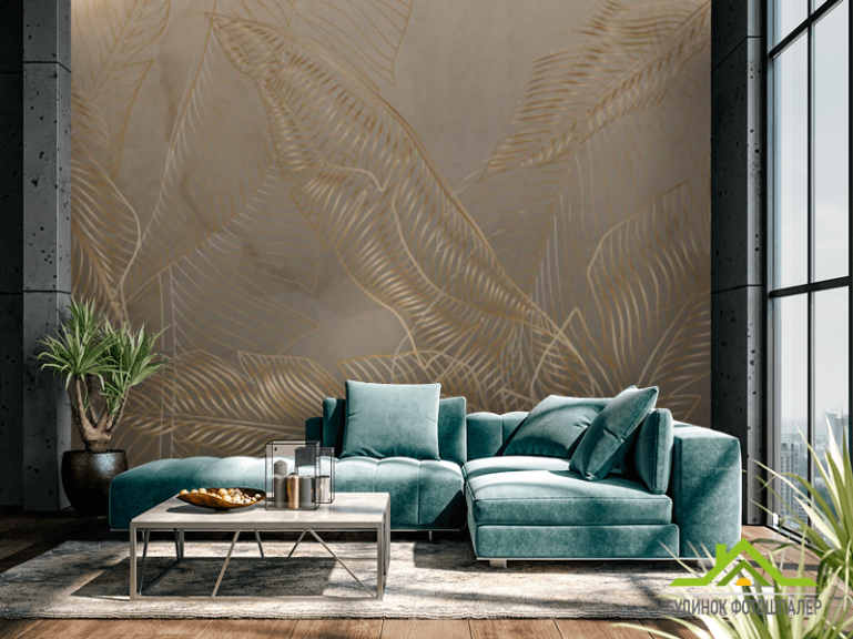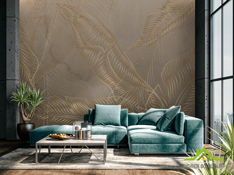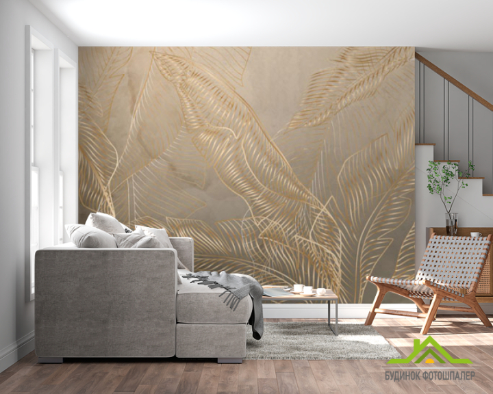 Фотошпалери золоті тропічні листя Фотошпалери золоті тропічні листя