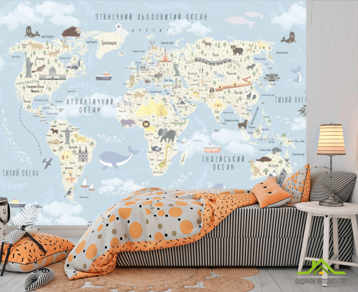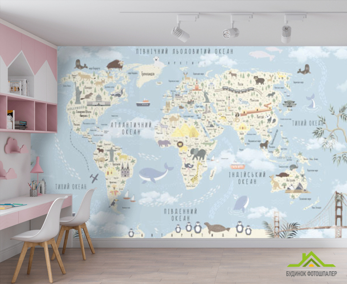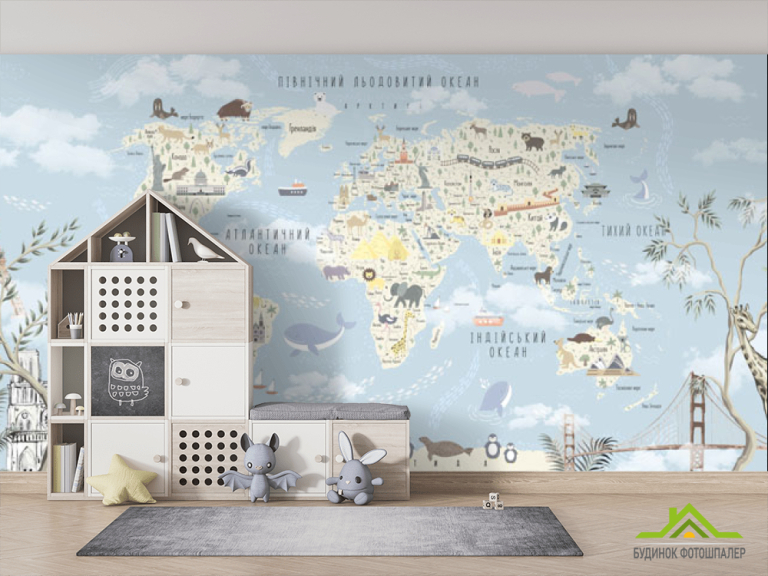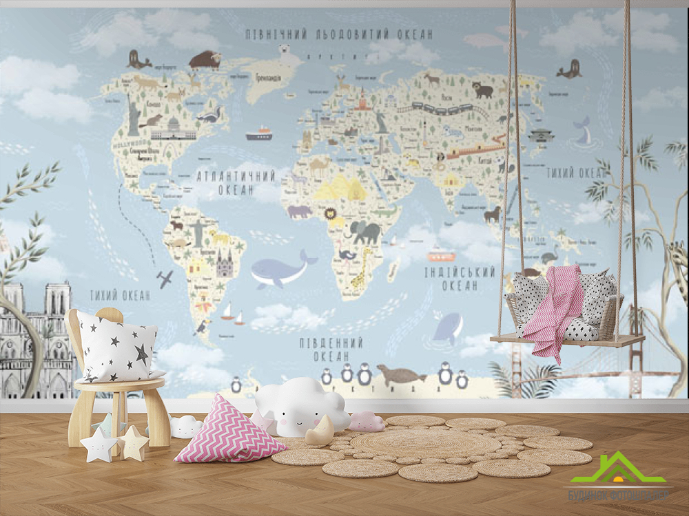 Фотошпалери Карта дитяча Архітектура тропічних листя Фотошпалери Карта дитяча Архітектура тропічних листя