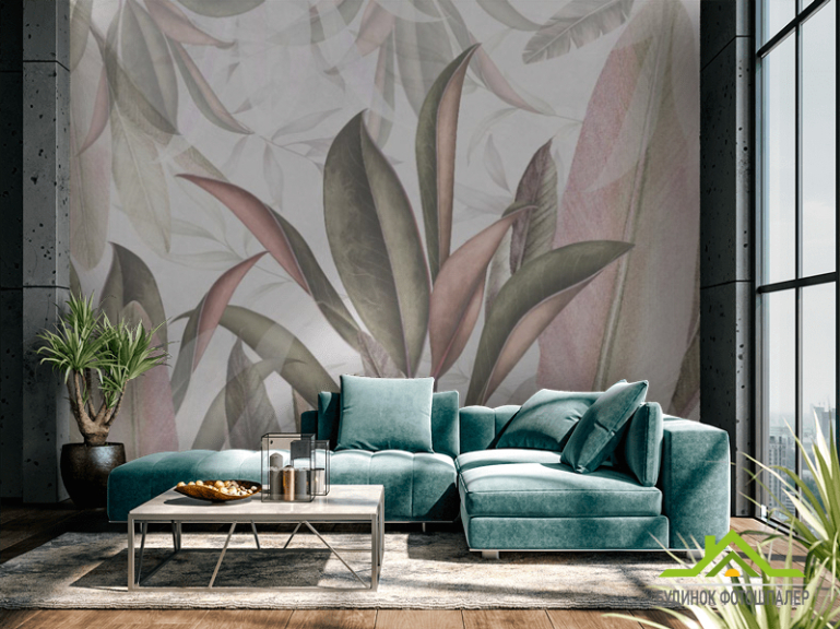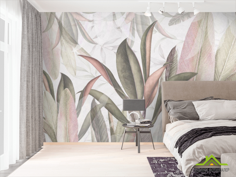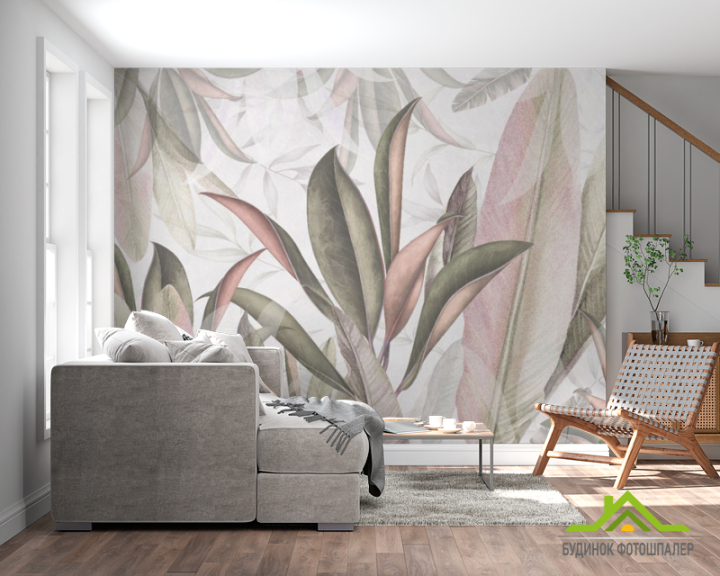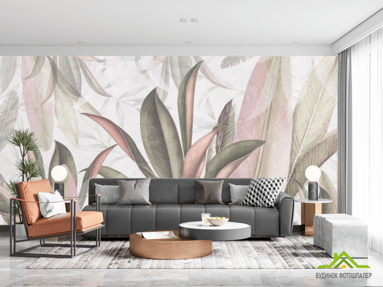 Фотошпалери Тропічні листя в рожевому відтінку Фотошпалери Тропічні листя в рожевому відтінку