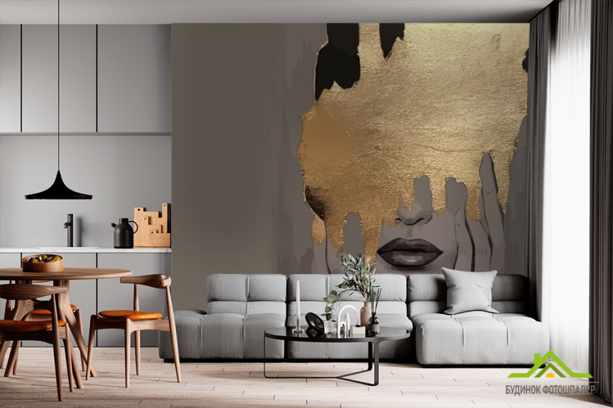 Фотошпалери обличчя жінки з золотом