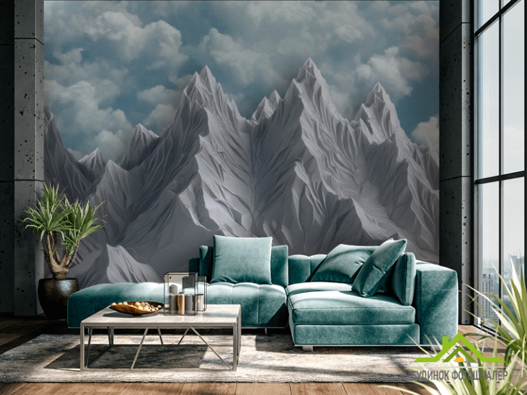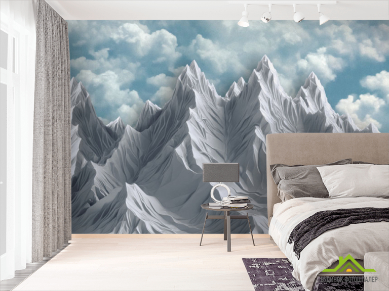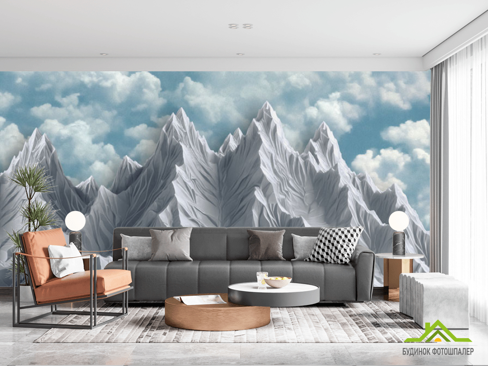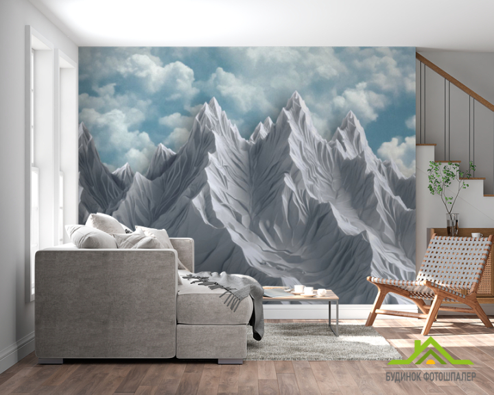 Фотошпалери 3Д гори блакитні з небом Фотошпалери 3Д гори блакитні з небом