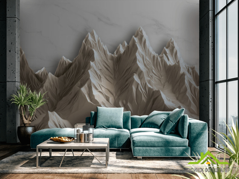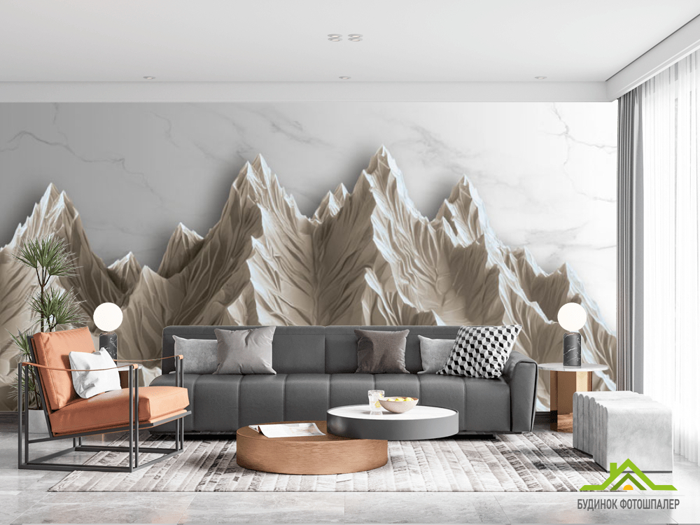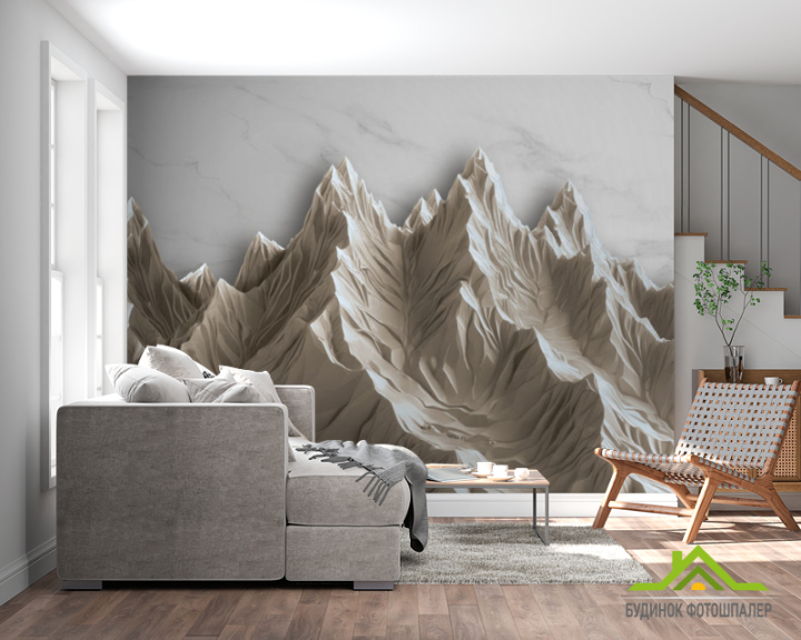 Фотошпалери 3Д гори бежеві з мармуром Фотошпалери 3Д гори бежеві з мармуром