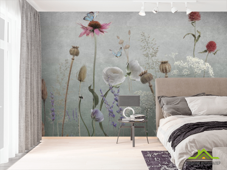 Фотошпалери польові дизайнерські квіти сірі Фотошпалери польові дизайнерські квіти сірі