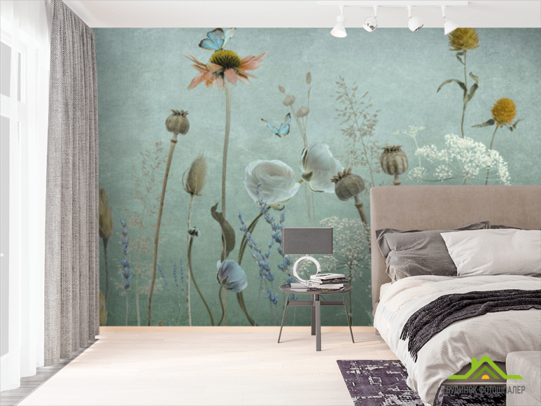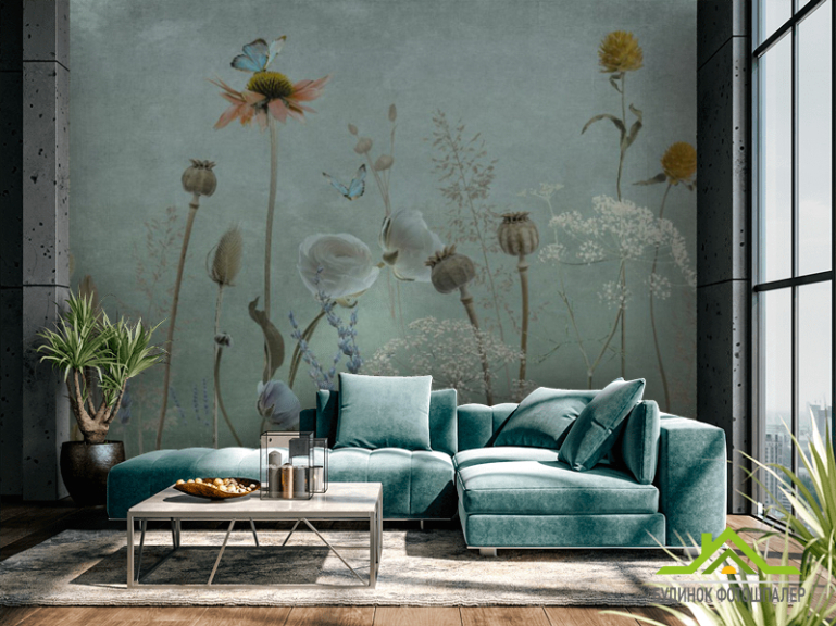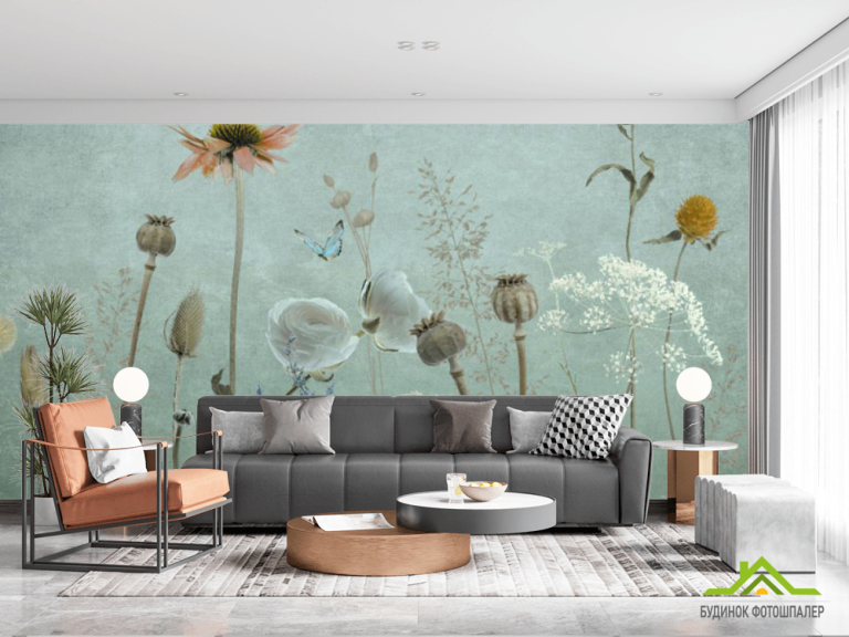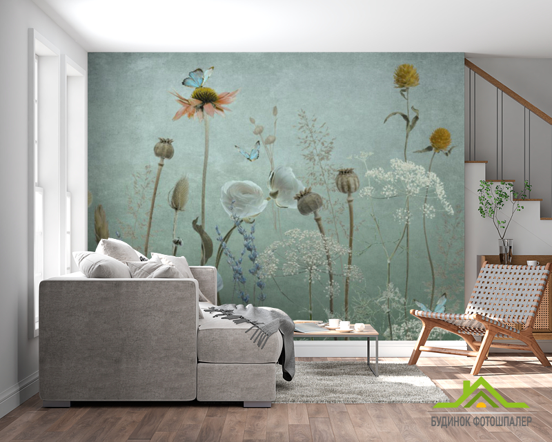 Фотошпалери польові дизайнерські квіти зелені Фотошпалери польові дизайнерські квіти зелені