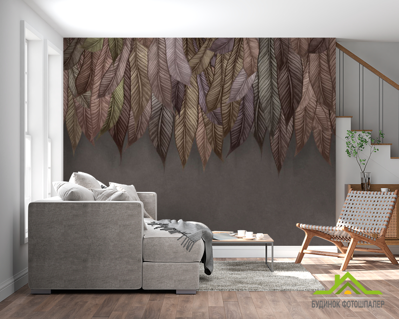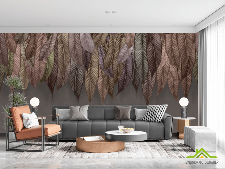 Фотошпалери 3Д листя зі стелі