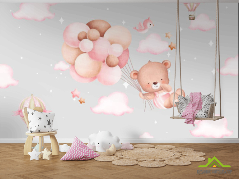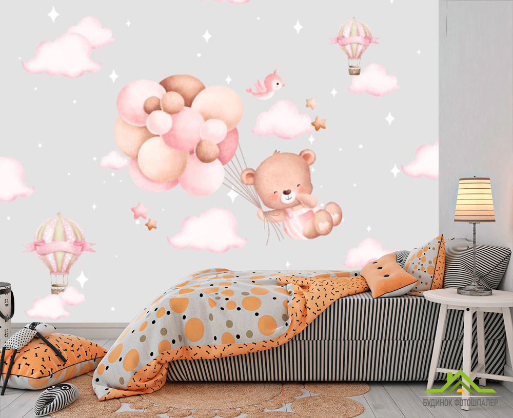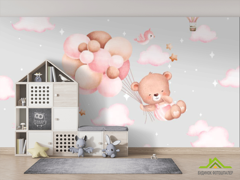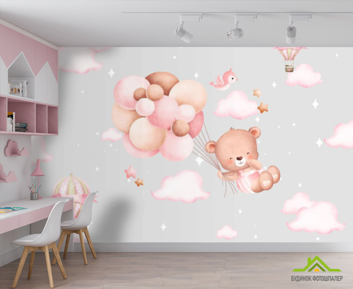 Фотошпалери мішка з кульками для кімнати дівчинки