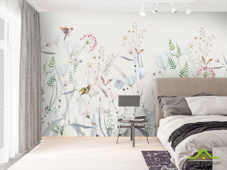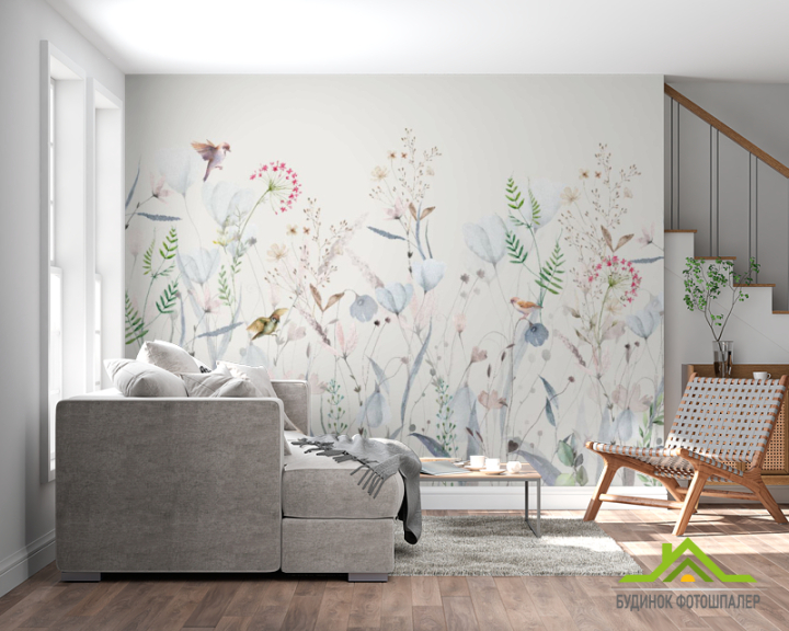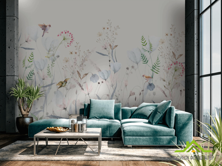 Фотошпалери мінімалістичні квіти блакитний відтінок