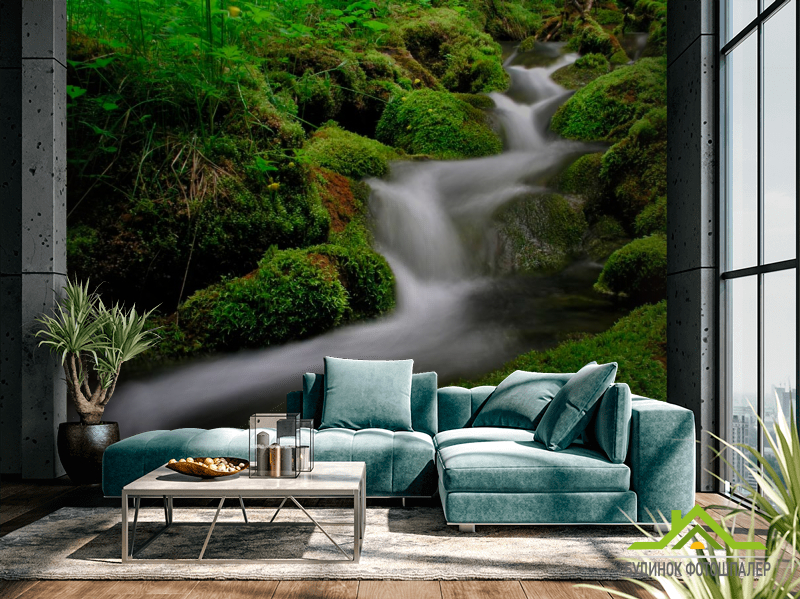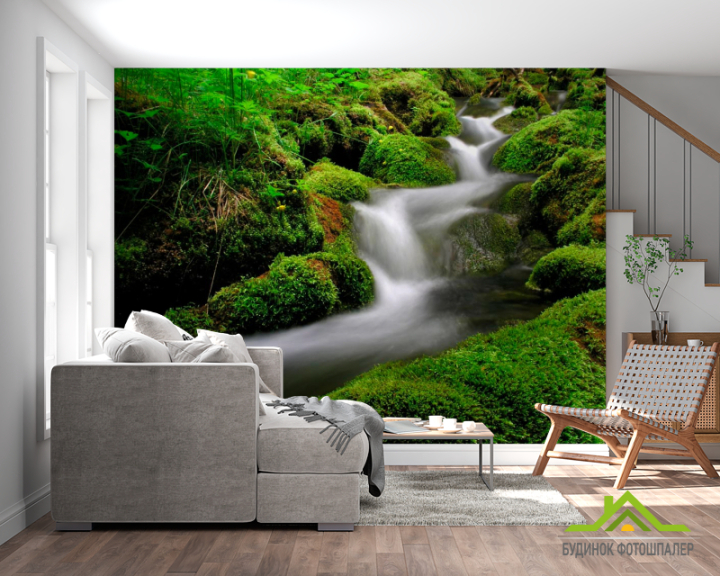 Фотошпалери Струмок, змійка, мох Фотошпалери Струмок, змійка, мох