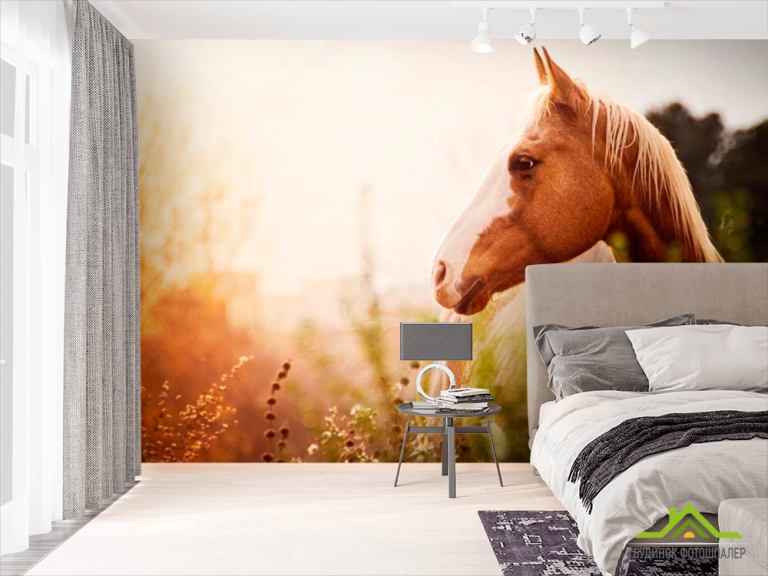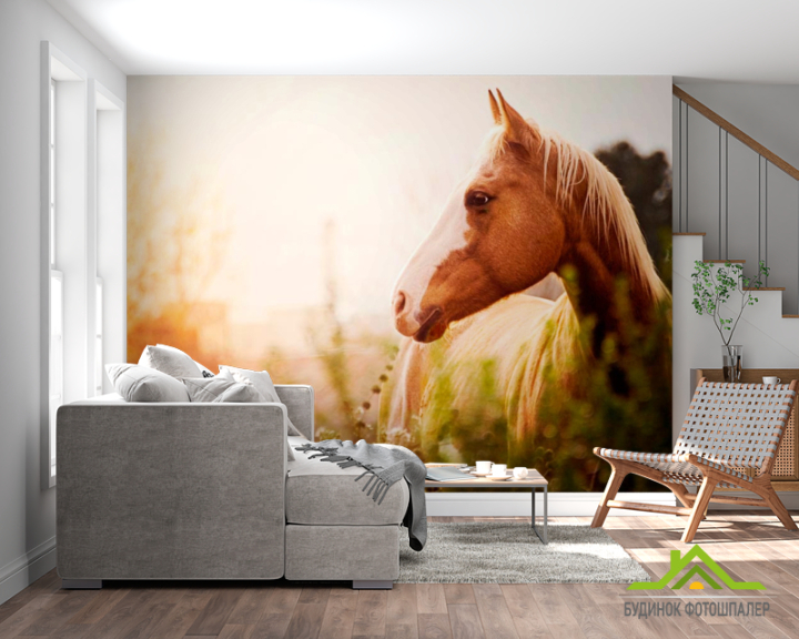 Фотошпалери Кінь серед трав Фотошпалери Кінь серед трав