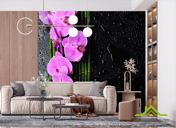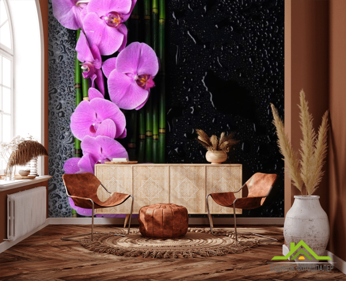Фотошпалери Орхідеї рожеві, бамбук Фотошпалери Орхідеї рожеві, бамбук