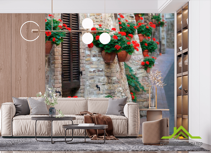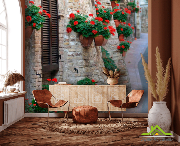 Фотошпалери Квіти на стінці будинку Фотошпалери Квіти на стінці будинку