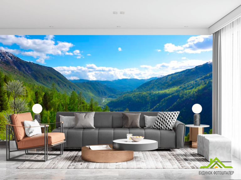 Фотошпалери Через горы, лес