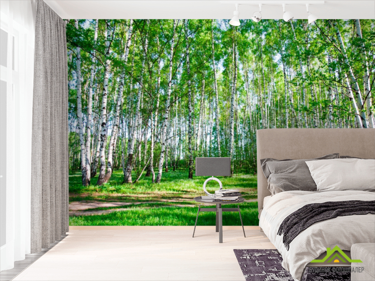 Фотошпалери Молоді берези, стежка Фотошпалери Молоді берези, стежка