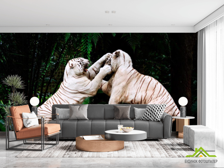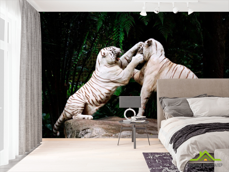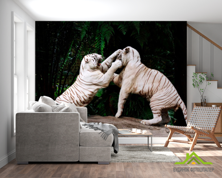 Фотошпалери Бійка білих тигрів Фотошпалери Бійка білих тигрів
