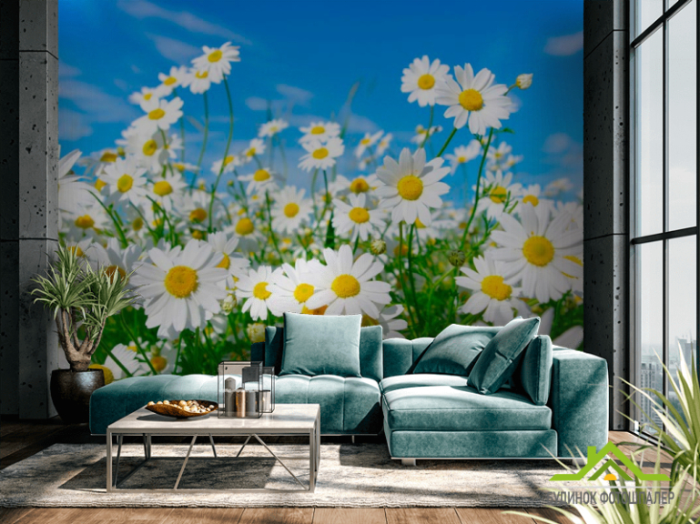 Фотошпалери Ромашки в степу Фотошпалери Ромашки в степу