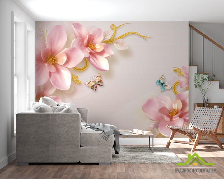 Фотошпалери Красиві квіти і метелики Фотошпалери Красиві квіти і метелики