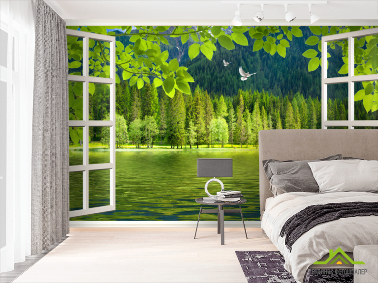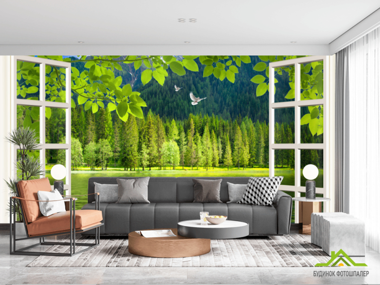 Фотошпалери Вигляд з вікна на ліс Фотошпалери Вигляд з вікна на ліс